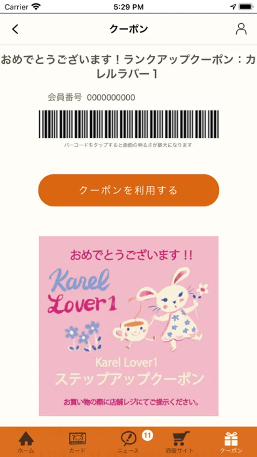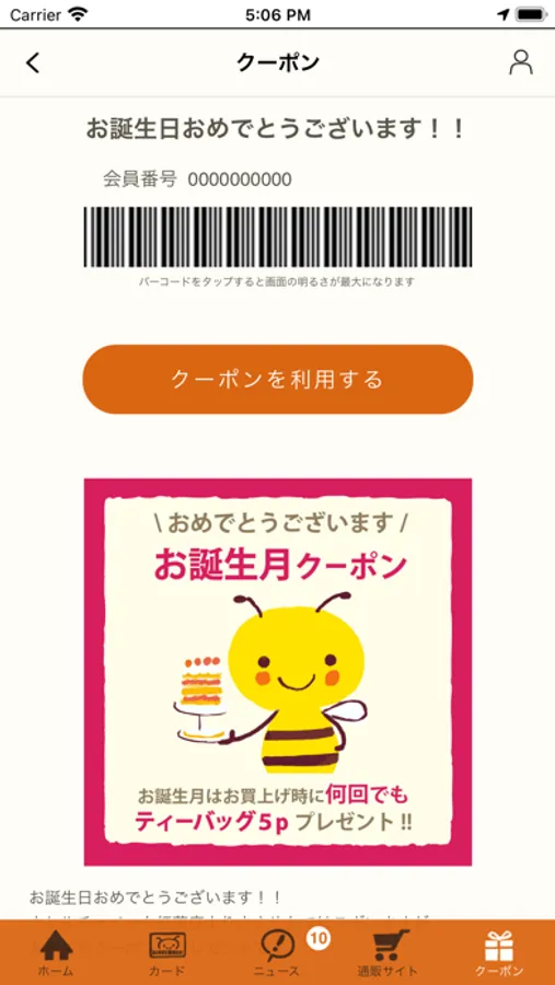 お誕生日ご登録のお客様には「バースデークーポン」、ランクアップ時には「ランクアップクーポン」など楽しいクーポンいろいろ!
