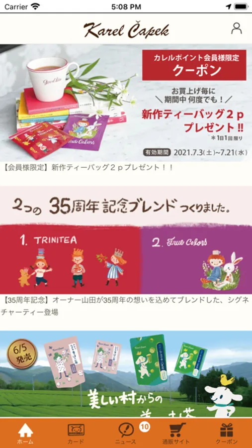 「おいしい紅茶を楽しく!」を旬茶100%・鮮度抜群の紅茶とかわいいデザインで目指し続けるカレルチャペック紅茶店の公式アプリです。