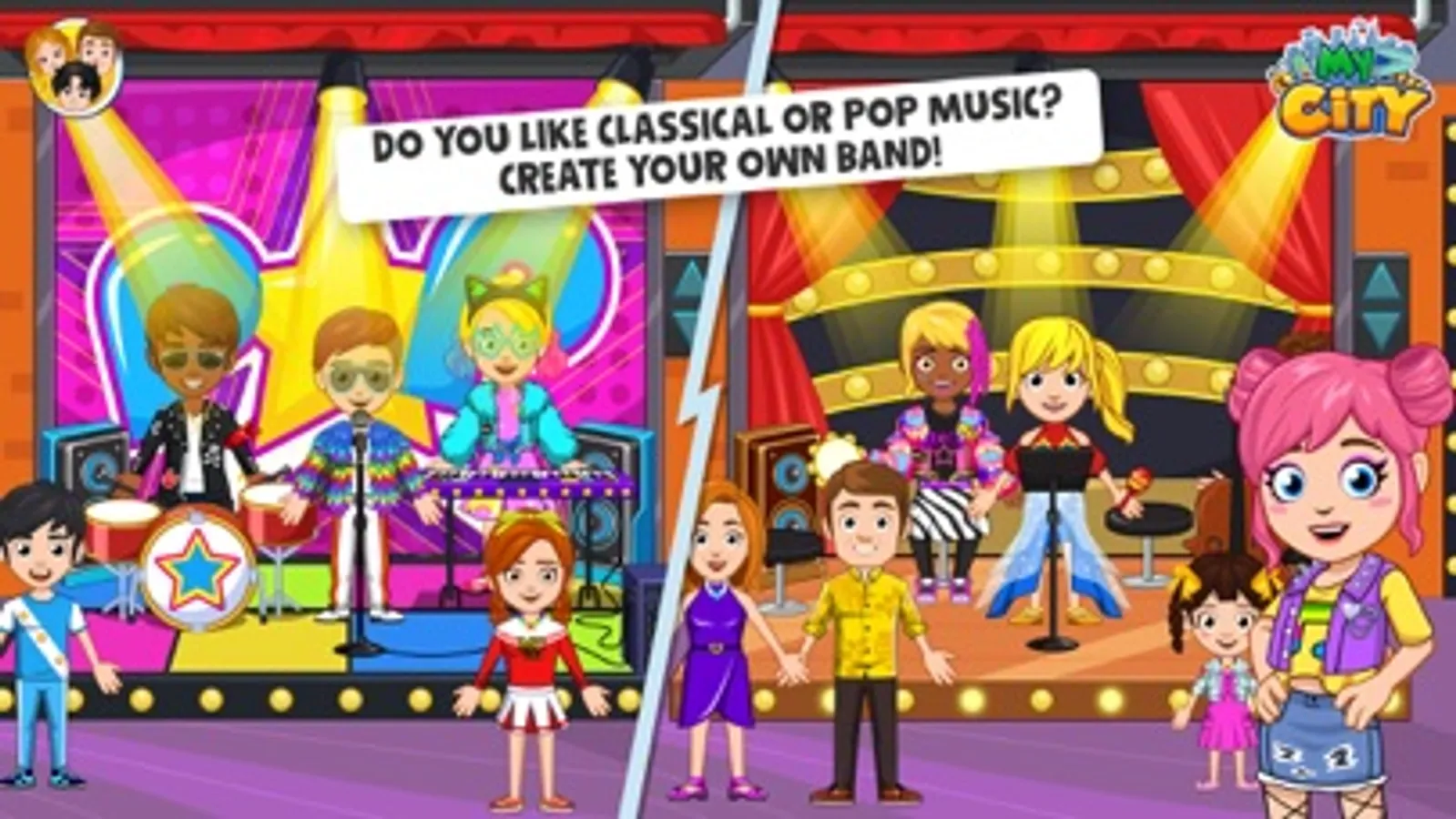 My City has just opened the brand new Kids Club House! This location has 6 floors! All packed with fun and exciting things to discover and explore. Visit the Rooftop pool, play laser tag or chill out in the arcade room after playing in a music band with your friends. With so many rooms, locations and characters every time you play My City : Kids Club House you will have a new story to tell. This game never gets boring. And don't forget the best thing about My City games is that you can move your characters between other My City games. So bring your favourite character over and let the fun begin!