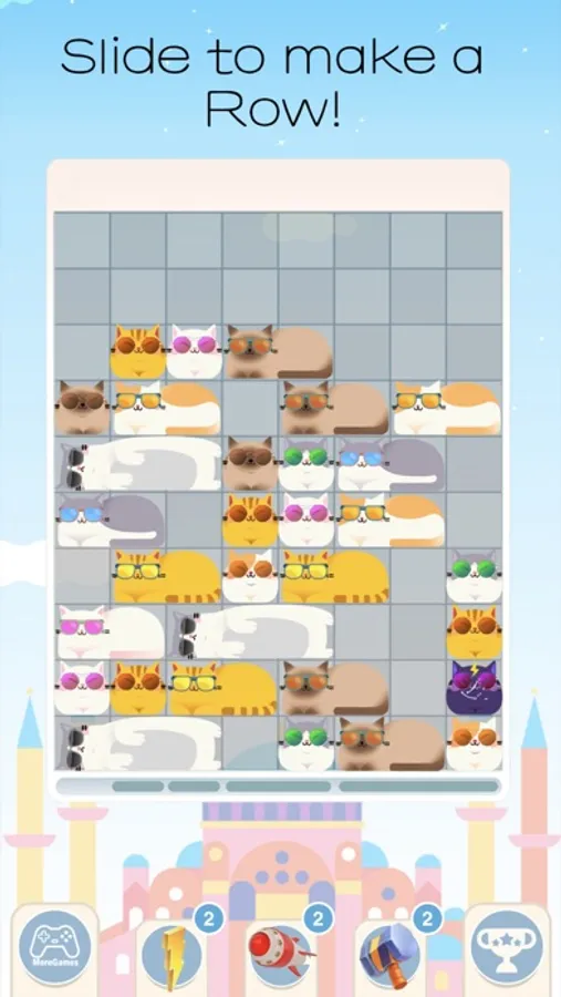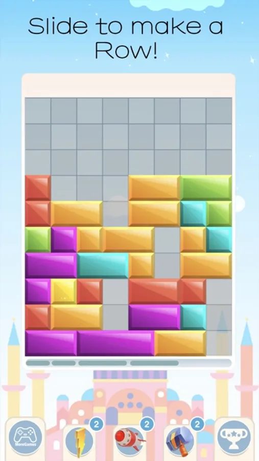Slide blocks left or right to fill and eliminate a row.