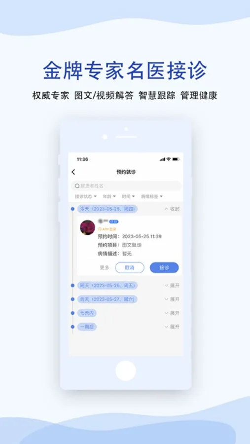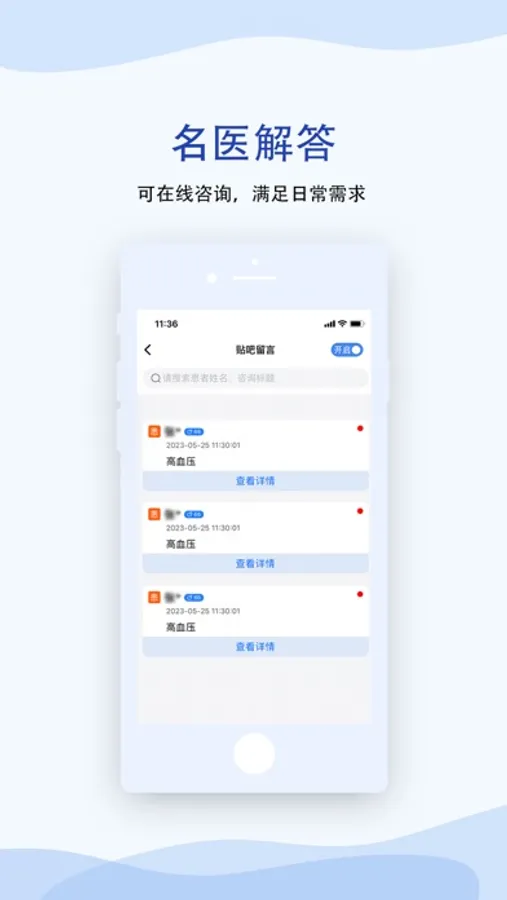 使医生和患者可随时随地通过手机移动终端,进行健康咨询及管理服务,并对患者的健康问题进行科学预防、智慧监测、长期跟踪、详情记录、专业指导、快速诊疗、诊后康复的全闭环管理,平台将传统线下诊疗搬上指尖,实现把医院装进手机里,更加方便医患沟通,有效节省就医成本,缓解人民就医难题,从根本上,建立一套融合互联网科技手段,进行科学管理自身健康的平台。
