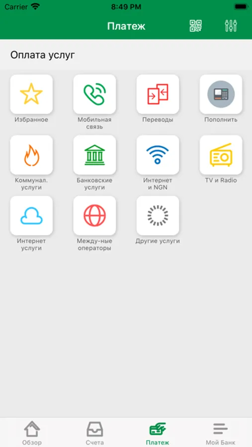 • Оплата услуг (мобильных операторов, интернет провайдеров, интернет услуг и услуг ЖКХ);
