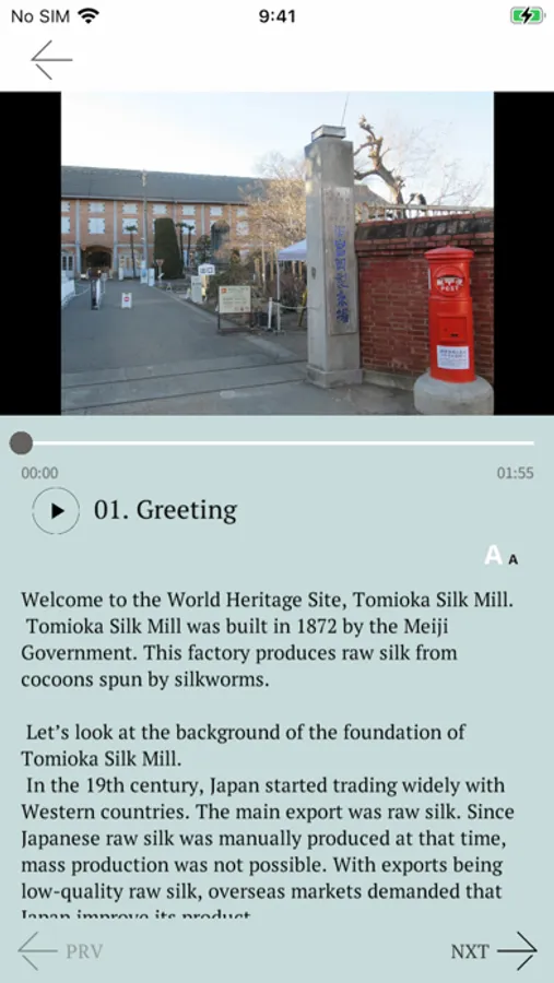 This is an official audio guide for the World Heritage Site, Tomioka Silk Mill, and the National Treasure, West Cocoon Warehouse.