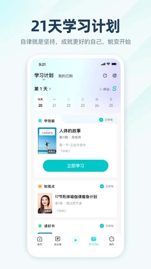 ·在听书产品中,“Kelly每日伴读”板块由简知App联合创始人陪伴用户坚持听完一本书,通过发布读书笔记,引导用户输出、交流。“简知VIP”精选1000+好书,涵盖用户学习成长主要领域,同时增加每日伴读、社群共读等服务,帮助用户把读书变成一种习惯。“简知书院”通过陪伴式的打卡学习,通俗易懂的解读方式,轻松有趣的激励制度,带领用户每周轻松读透一本书。