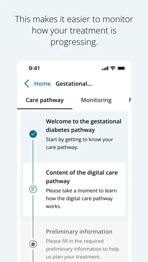 The app modernises the experience of using digital pathways. The app is simple and easy to use. You can find information on your health-related matters or another person’s on whose behalf you are acting in the digital pathway in text, images and videos, as well as surveys, exercises and instructions. The information in your digital pathway will only be visible to the healthcare professionals treating you or the other person on whose behalf you are acting.