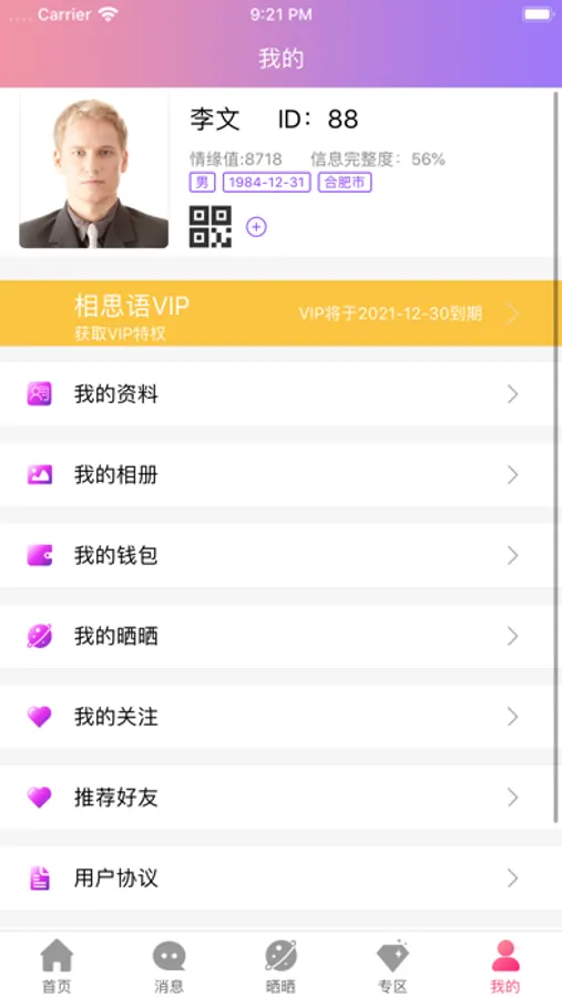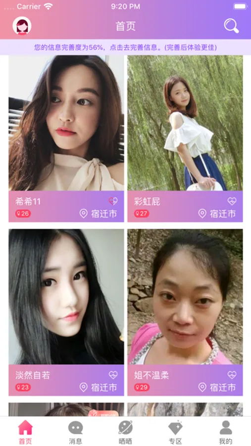 [首页]:相亲男女头像照片、基础信息展示,精准搜索,智能匹配。