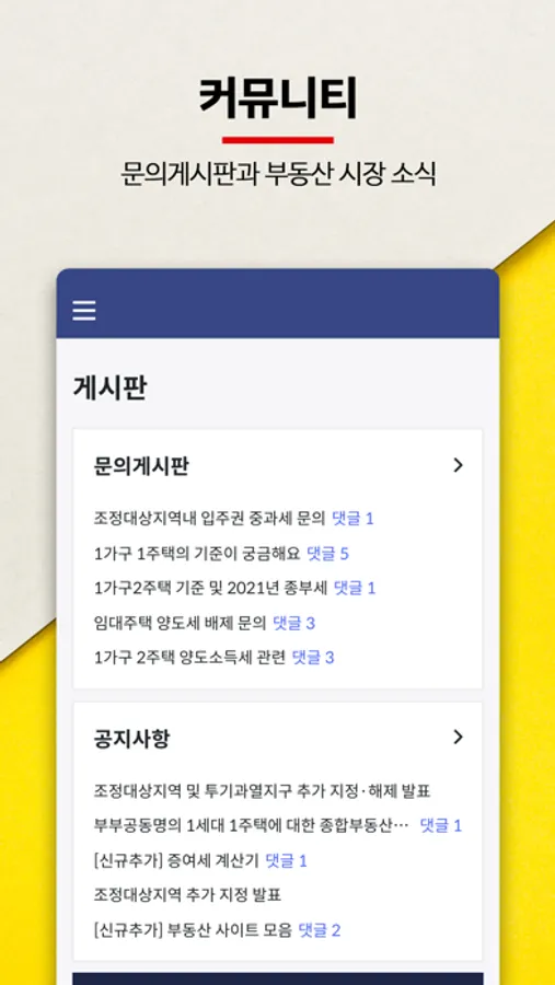 어떻게 하면 사용자가 더 쉽게 계산기를 사용할 수 있을까? 우리의 일상을 편리하게 만들어 줄 방법은 없을까? 부동산계산기 EZB는 오늘도 발전을 위한 고민을 이어 나가고 있습니다. 사용 중 불편한 사항, 개선 사항, 제안하고 싶은 아이디어가 있으면 애플리케이션 문의게시판을 통해 여러분의 생각을 들려주세요. 소중한 의견을 통해 발전하는 부동산계산기 EZB가 되겠습니다.