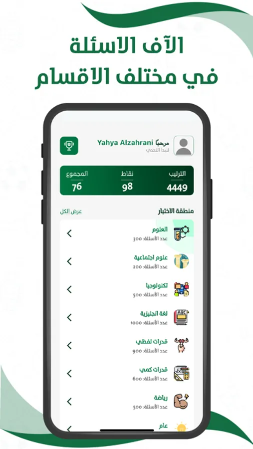 اختبر معلوماتك مع تطبيق الدافور المجاني في مختلف العلوم والمعارف المختلفة و قياس القدرات العامة اللفظي والكمي والاختبار التحصيلي واختبارات مستويات اللغة الإنجليزية، حلول المناهج بطريقة ممتعة ومفيدة.
