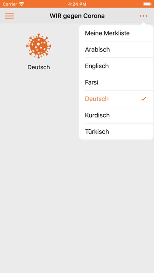 - Eine Sprachwechsel-Funktion für Arabisch, Englisch, Farsi, Kurdisch und Türkisch