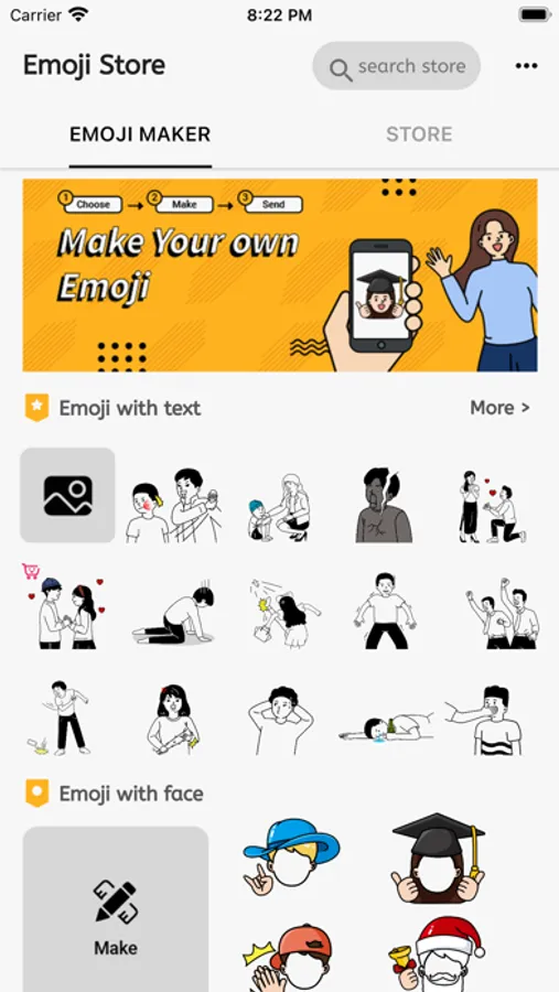 * Write text on your emoji pictures or funny emojis.