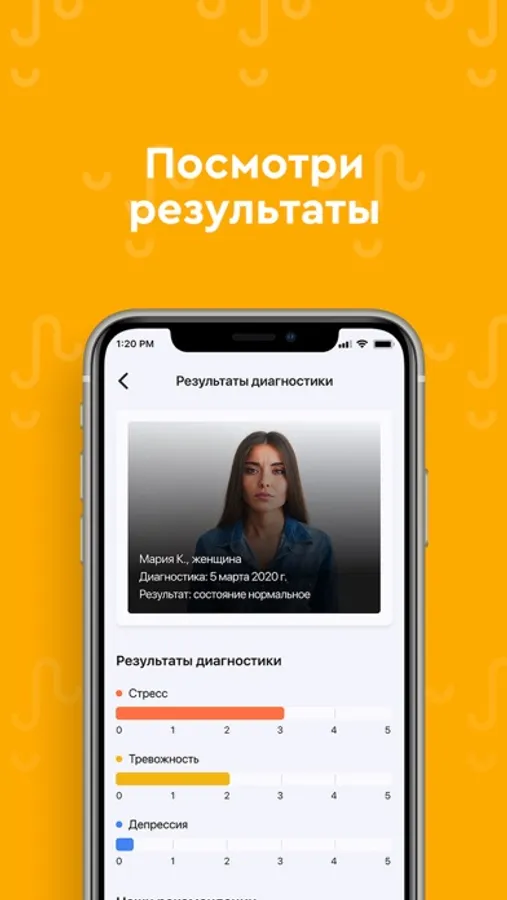 Проведи анализ психологического состояния по фото. Приложение определит твой уровень тревоги, стресса и депрессии, а также подберёт рекомендации для выравнивания эмоционального состояния!