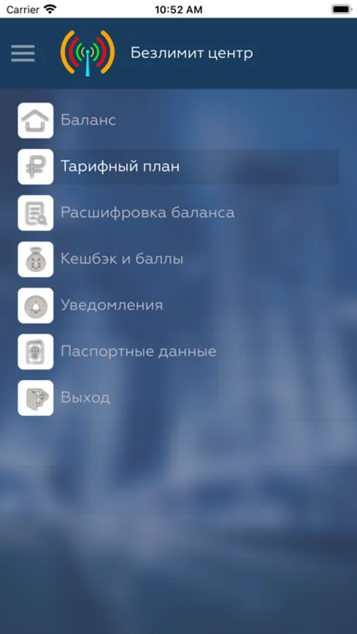 Приложение Безлимит центр для контроля баланса телефона. Позволяет контролировать баланс мобильного телефона и остатки минут, смс, мегабайт. Получать детализацию, информацию об условиях обслуживания.