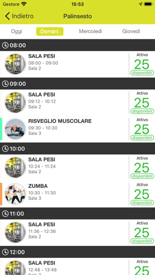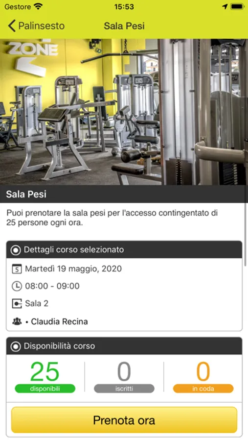 Five Zone Fitness App espone la lista dei corsi fitness del giorno suddivisi per fascia oraria con nome corso, ora inizio ora fine, sala, disponibilità, dettagli corso selezionato, permette di aggiungere al calendario dello smartphone i corsi di tuo interesse, mostra i Posti liberi, posti prenotati, utenti in lista d’attesa. Inoltre permette di prenotare la tua lezione o la tua sala.