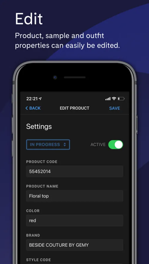 - Edit product, sample, and outfit properties.