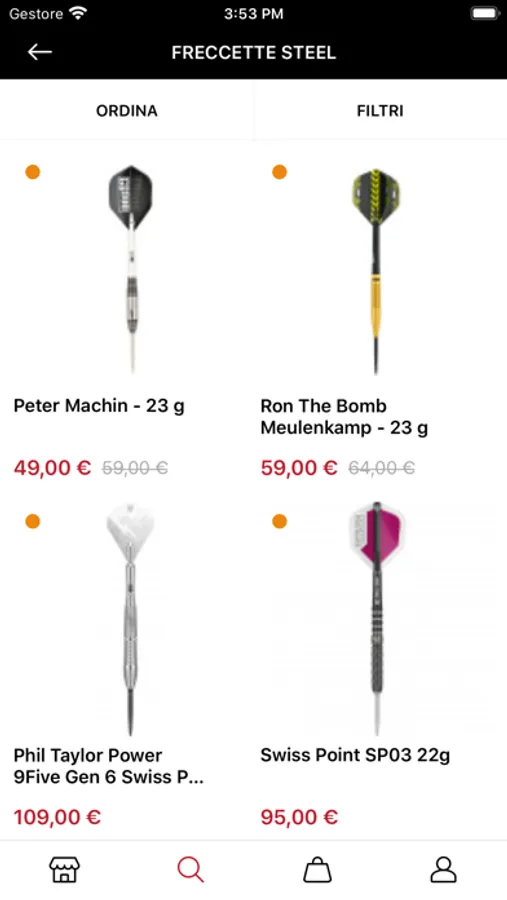 L'app ufficiale di Triplo20 il negozio di freccette più fornito d' Italia e dedicato a tutti gli appassionati di darts per acquistare freccette soft e steel, bersagli in sisal e bersagli elettronici regolamentari da torneo ed accessori dedicati al mondo delle freccette e dei suoi campioni PDC e BDO. Triplo20 è distributore ufficiale per l'Italia di Bull's Darts, Unicorn Darts, Target Darts, One80, Winmau e Red Dragon. Troverai una vasta gamma di freccette in tungsteno e tutti gli accessori necessari come alette, punte, astine, astucci oltre a preziosi consigli per le tue scelte