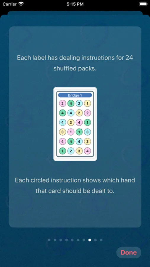 • Card Dealer formats labels for your playing cards – each label will tell you which player that card should be dealt to. Each label shows 24 or more different deals.