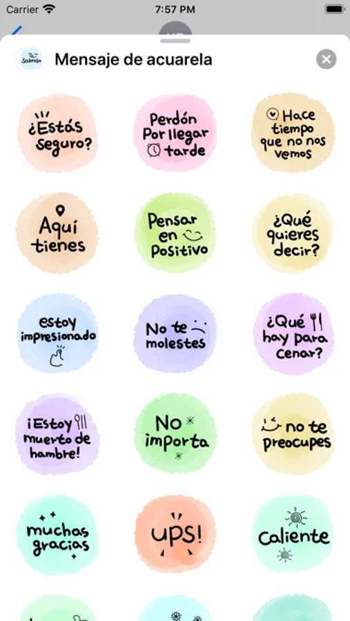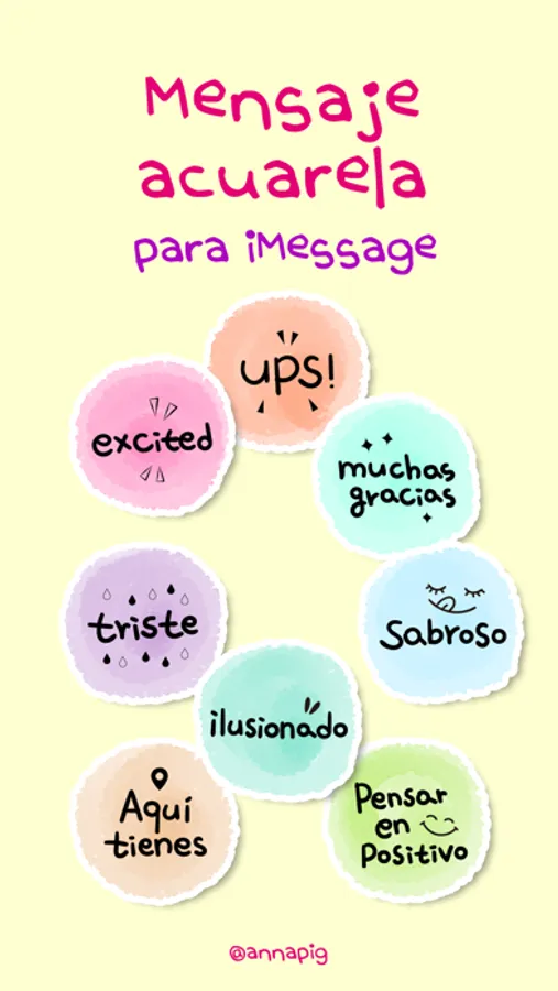 Es una pegatina manuscrita sobre un fondo de acuarela.