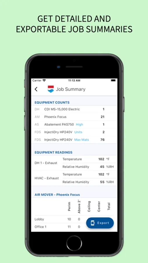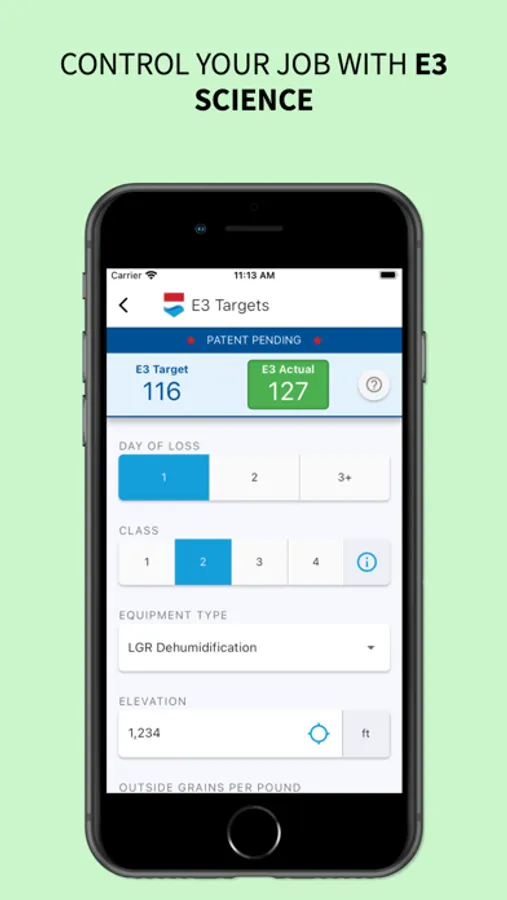 This app is built for all levels of restorers in the water mitigation industry. For the first time ever these proprietary algorithms and metrics will give the restorer complete control of their drying chamber regardless of the size, class, equipment used or outside conditions instead of the restorer being controlled by their chamber. The keystone metric for this app is the patent pending E3 metric that can evaluate the exact evaporation ability of any condition in a drying chamber and the daily E3 targets that have been set for all different types of drying equipment for all possible water classes and outside conditions. This metric also allows for all different types of equipment to be specifically ranked or compared to prove which is the best for any job scenario.