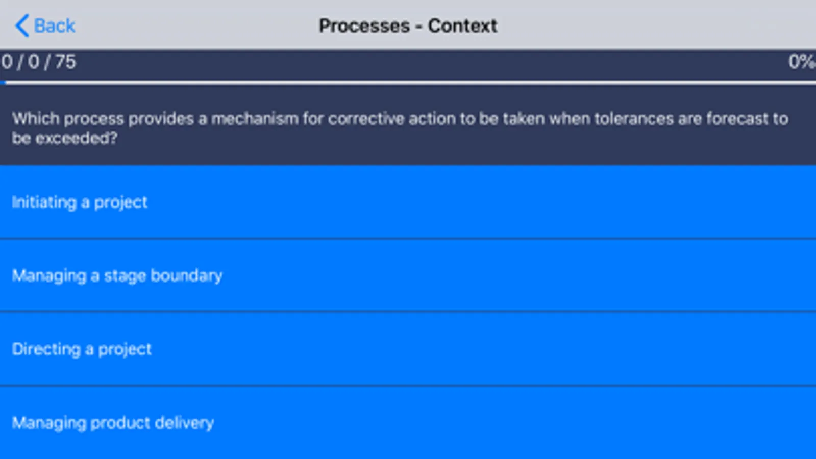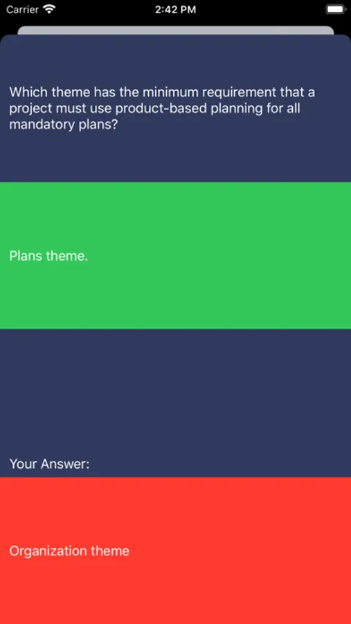 If you get a question wrong in a topic set the app will display the question along with the correct answer and your (incorrect) answer.