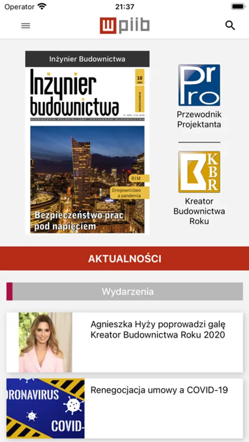 W aplikacji są też dostępne najświeższe informacje z serwisów internetowych: www.inzynierbudownictwa.pl, www.izbudujemy.pl.