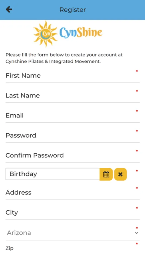 This apps allows all clients of Cynshine to check in for a class. Further one can view class schedule and previous class check in. New users can also register themselves using the app.
