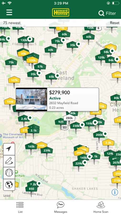 In this app, you will be able to see all Howard Hanna Homes for sale throughout our market areas, including homes for sale in Pennsylvania, Ohio, New York, Virginia, Michigan, West Virginia, Maryland, North Carolina, South Carolina, and Indiana.