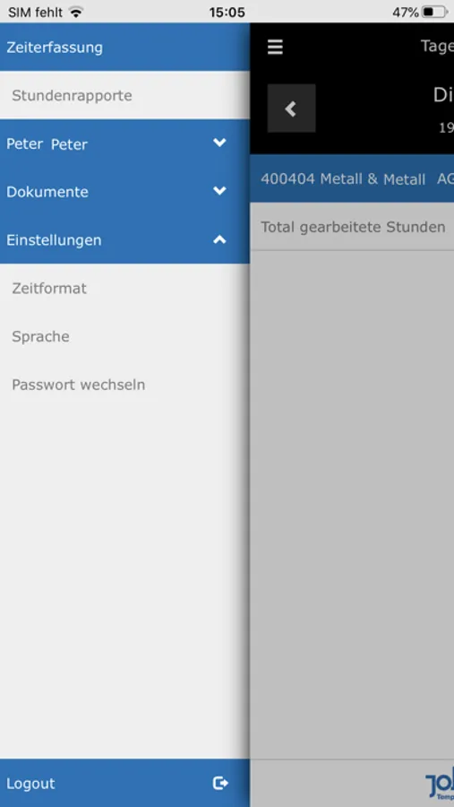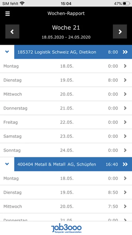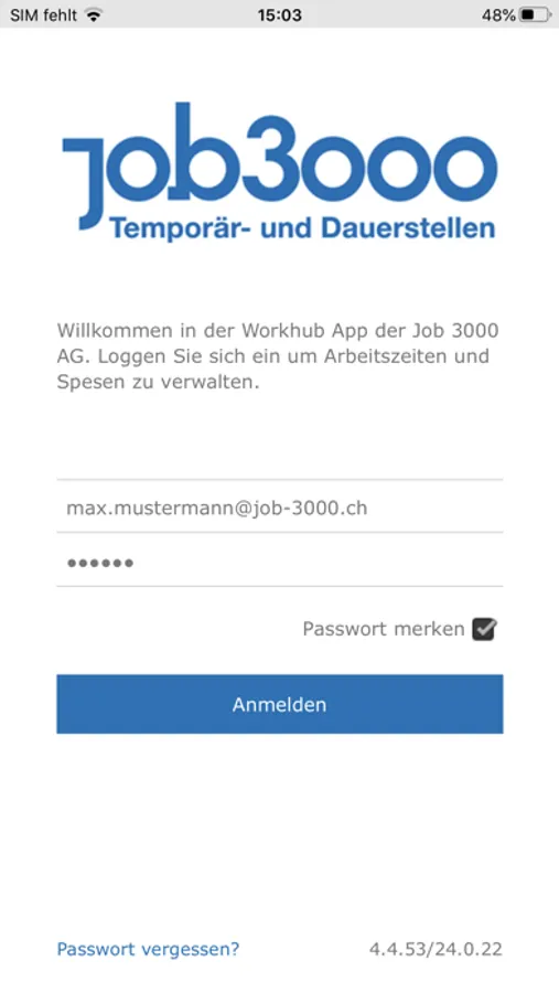 Die Workhub App von Job 3000 ermöglicht die Verwaltung von Arbeitszeiten, Spesen und mehr.
