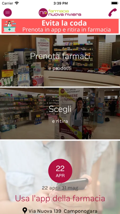 L'app della Farmacia Nuova Riviera offre l'opportunità di usufruire dei servizi della farmacia riducendo gli spostamenti ed i contatti e mantenersi correttamente aggiornati.