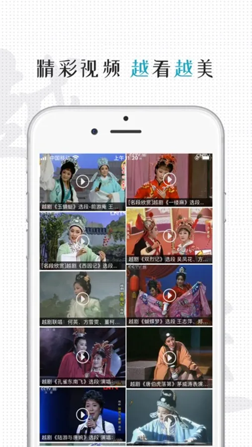 (2)精选越剧演出视频,综艺节目,名家名段及全本大戏,教学视频,戏曲艺术家即兴表演,戏迷表演等。