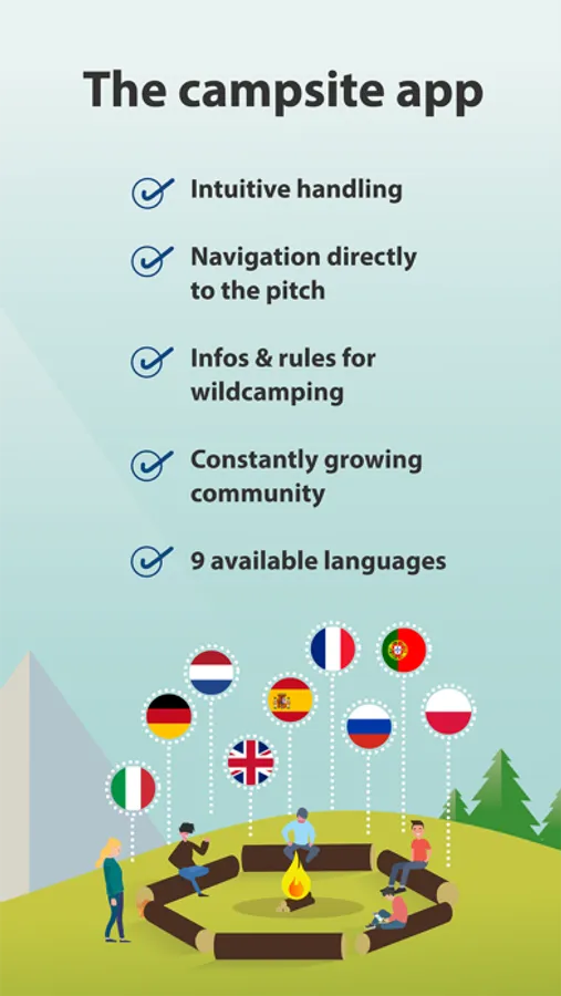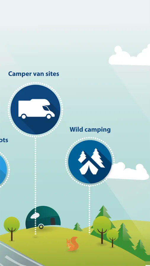 Campsites, pitches for dispersed camping, micro-campsites, RV parks, and parking lots, all with detailed information and photos - in nine different languages!