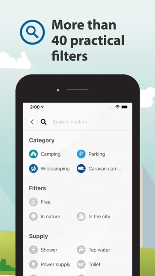 Even the best RV parks, most hidden pitches for dispersed camping, or most beautiful campsites are useless if you can't find them. With our practical filters, you decide what is important to you, whether it's the type of pitch, facilities, features, or activities.