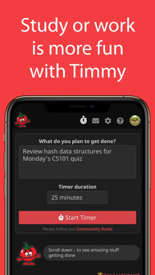 Timmy is the first and only Pomodoro timer social network. Launched in mid-April of 2020, the TimmyTimer.com website is already motivating hundred of students, software devs, artists, and knowledge workers around the world to stay focused and get stuff done.