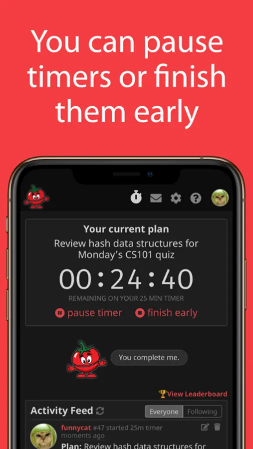 Since all timer notes are public, you can see a fascinating activity feed of every member's current timer notes. You can Like other timers, Follow other members, climb up the leaderboard, and send and receive private messages of support. The social accountability that results from making your goals and results public is a magically strong motivator.