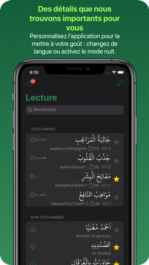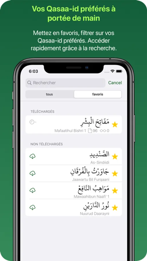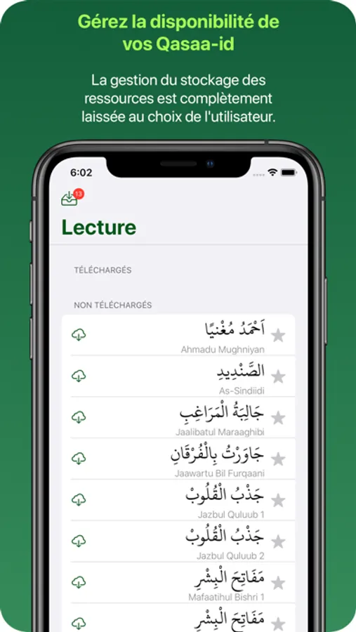 • Téléchargez uniquement les Qasāid que vous souhaitez conserver pour la consultation hors connexion.