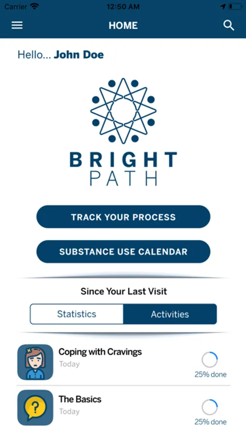 Bright Path is a mobile health research tool designed to offer additional support to teens and adolescents in therapy and/or counseling for mental health and substance use concerns. The app includes information and activities about coping, mental health, substance use, communication, and healthy decision making. Access to online resources with further information about emotional and behavioral health is also available.