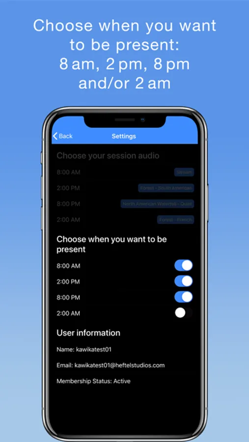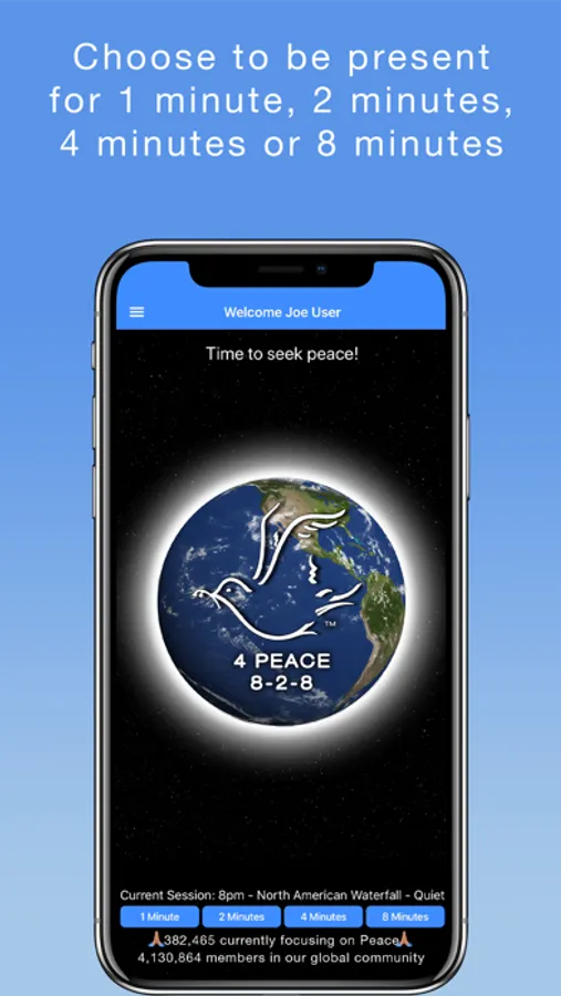 Choose to be present for 1 minute, 2 minutes, 4 minutes or 8 minutes.