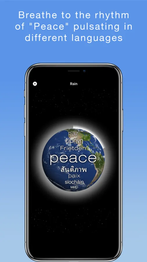 While listening to the sounds of nature, relax and breathe gently to the rhythm of "Peace" pulsating in different languages. Observe the aura of light increasing around the Earth creating a more brilliant inner aura of peace.