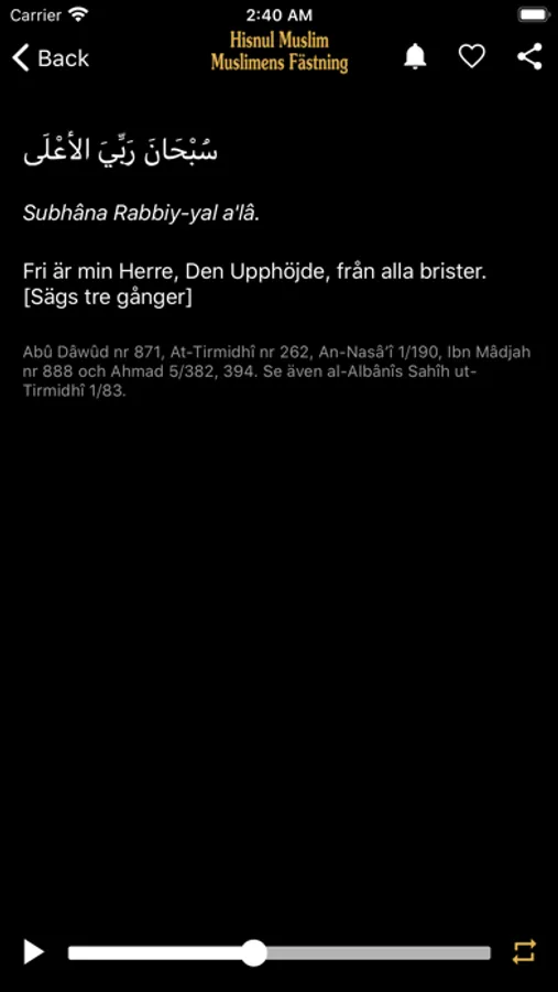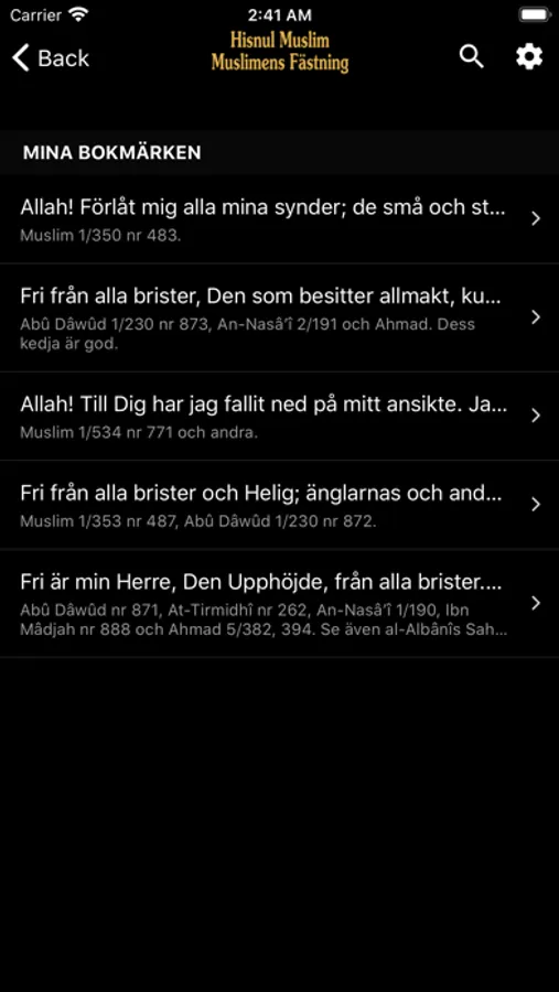 Appen är känd som Hisnul Muslim eller Fortress of the Muslim och är en sammanställning av åminnelser och åkallelser från Koranen och profetens (صلى الله عليه وسلم) sunnah. Hisnul Muslim betyder Muslimens fästning.