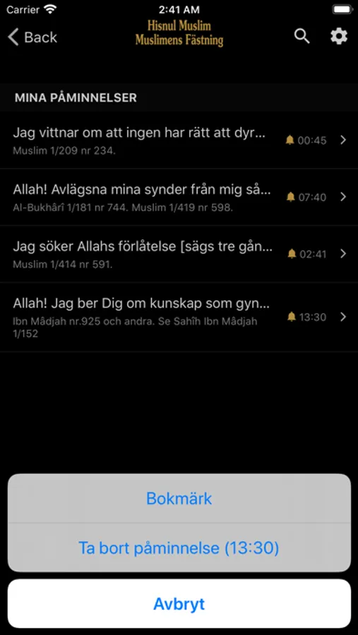 - Schemalägg dina dagliga åkallan och få en notifieringspåminnelse när det passar dig