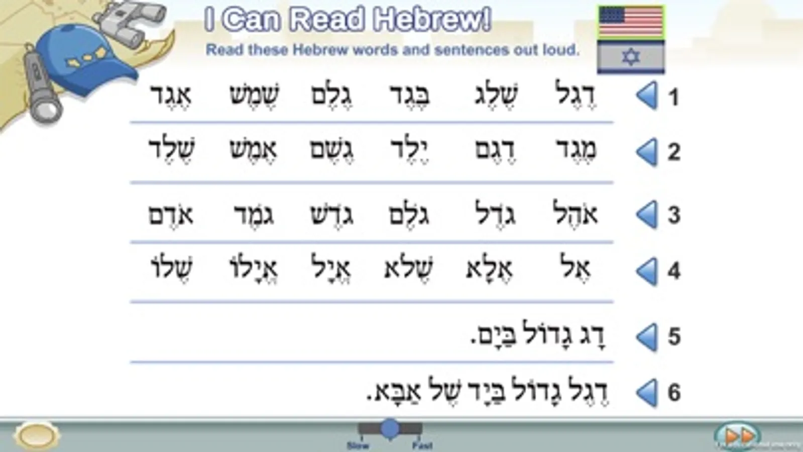 Alef Bet Quest's lessons on decoding and fluency unfold against a backdrop of cultural and modern Hebrew vocabulary, with an app adventure that takes students on a 20-stop tour through Israel. Students will develop a connection to Israel as they learn to read.