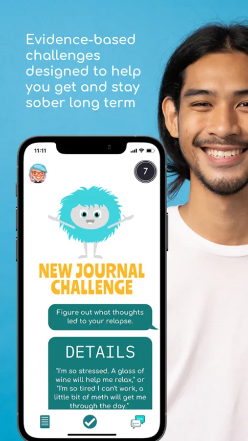 • Do bite-size challenges designed to teach you the skills you need to get and stay sober