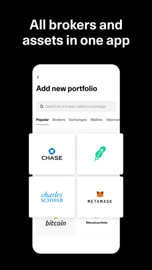 - Add any asset, including stocks, crypto, ETFs, NFTs, real estate, luxury collectibles, art and commodities and visualize them in one dashboard.