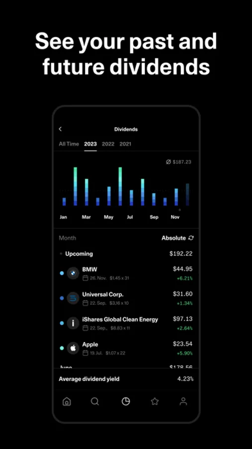 Use our portfolio and dividend tracker to analyze your entire investment performance and make informed decisions.