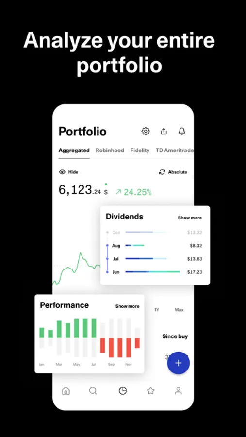 - Get a transparent overview of your costs, taxes and dividends. - Deep dive into your portfolio performance using advanced metrics such as time-weighted returns.