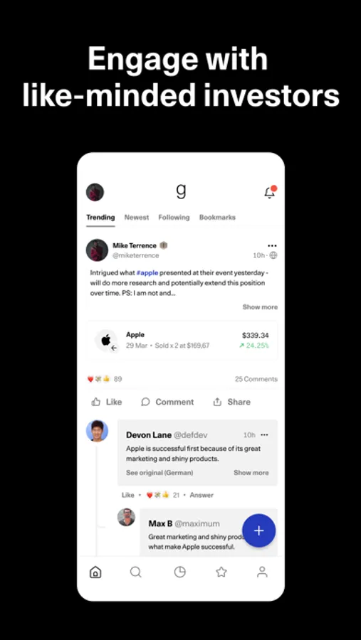 - Dive into themed discussions on stock and crypto and discover new content easily in our feed.