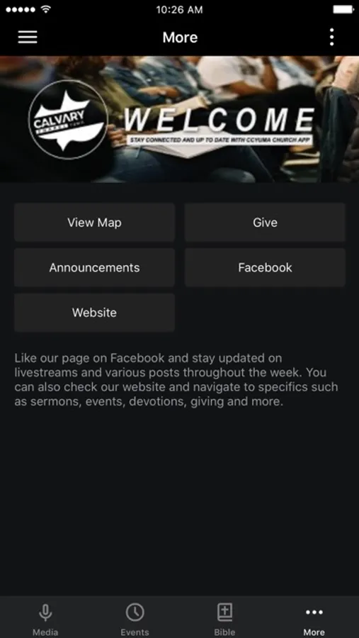 This app will help you stay connected with the day-to-day life of our church. With this app you can: