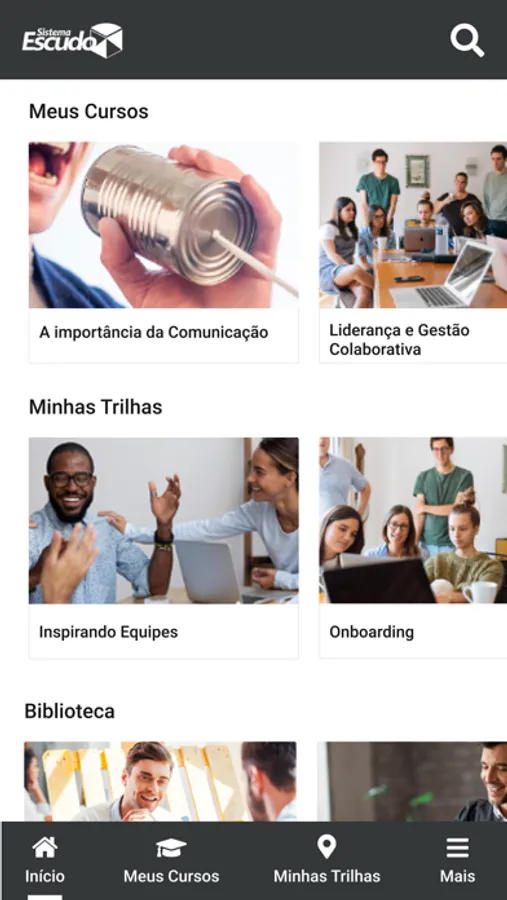 Aplicativo do LMS Portal Escudo que permite o uso móvel para executar cursos, trilhas de aprendizagem, incluindo de forma off-line.