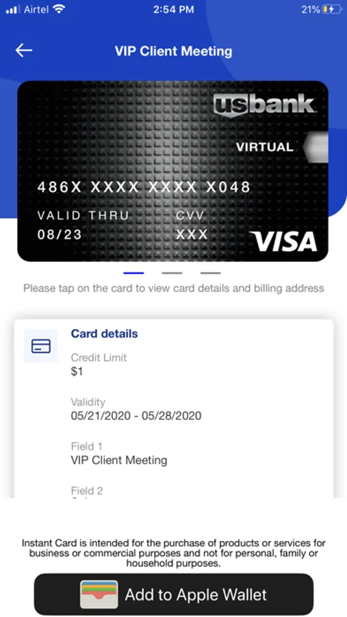 Instant Card combines the capabilities of a U.S. Bank virtual credit card with the power of an Apple device to create a completely digital payment experience.