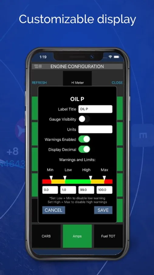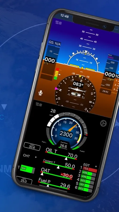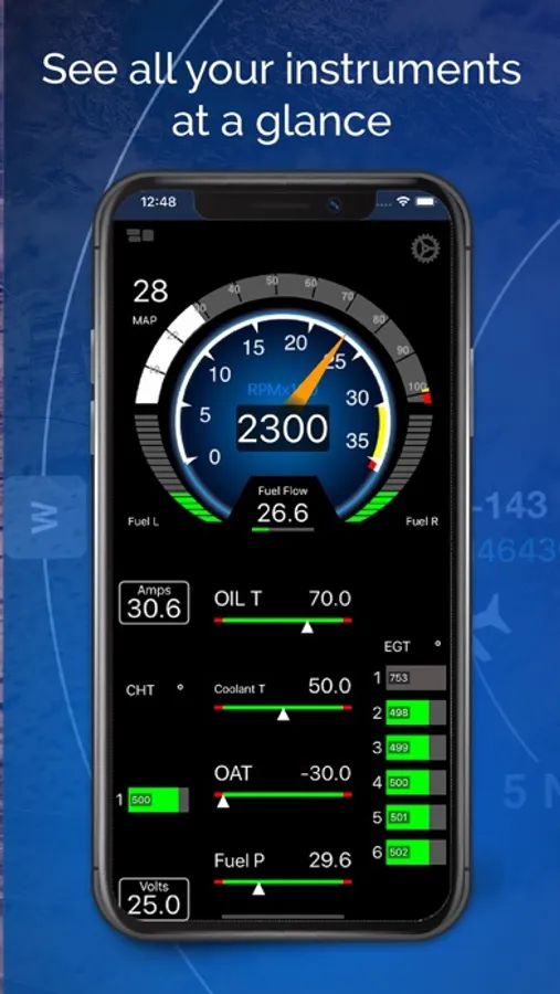 The Levil Aviation App utilizes iOS multi-tasking features to work side-by-side, full screen, or slide-over, where modules can be shown on top of your navigation app of choice. The current version includes interfaces for traffic avoidance, engine monitoring, EFIS, angle of