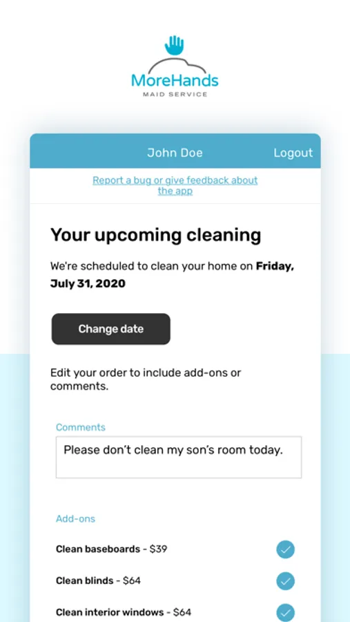 Manage your upcoming appointment details, get notified about the team's proximity and provide feedback on our cleaning.